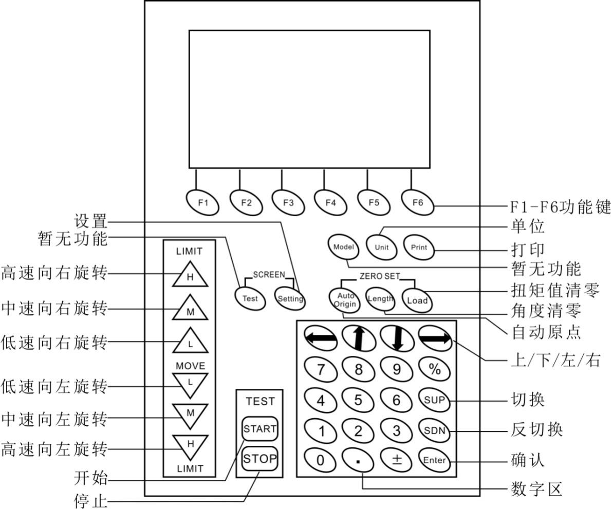 2.2.1 功能键:F1~F6这6个功能键对于仪器所有界面都是通用的,对应开机后屏幕下方按键。