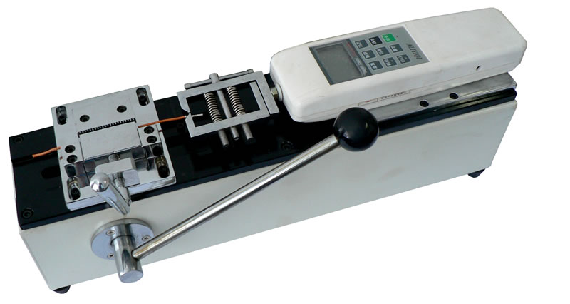端子拉力测试仪是我公司针对线束及电子行业研制开发的一种检测设备,专用于检测各种线束接线端子的拉脱力。可配置NK、HF推拉力计和专用夹具,本仪器具有设备小巧、控制准确、测量精度高、试件装夹方便、操作简单等特点,是线束生产厂家确保产品质量的理想设备。