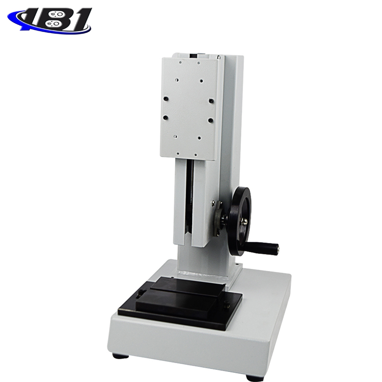 根据所需测试的样品特点,将其机台安装或安放在工作台上合适的位置。旋转测试架侧面的手轮,测力计就能上下平稳移动,完成测试工作。