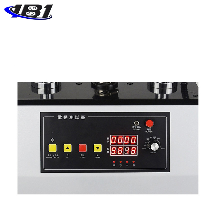 7、计数器使用方法:计数器上有两行数字显示屏,上方为记录试验次数(也就是实时测量次数),下方为预置按钮,共4个,从左至右分别为个、十、百、千,表示预设置可设在0~9999的范围内(预设置是任意设置)。如:用户对某一产品进行连续测试,测试次数为9999, 需分别在4个按钮上调节,调至显示为9999,再按手动/自动按钮,即可进行测试9999次,运行9999次后自动停止,如需再次测试,按停止按钮即可。