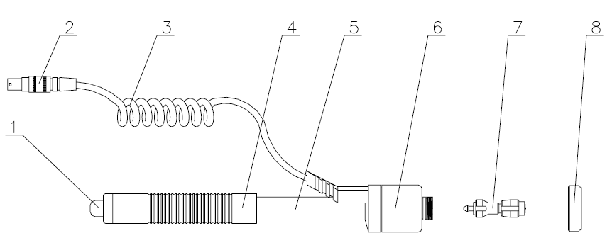 1.释放按钮 2.冲击装置插头 3.导线 4.加载套