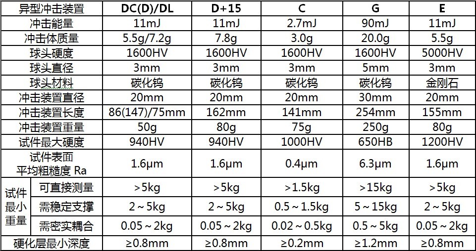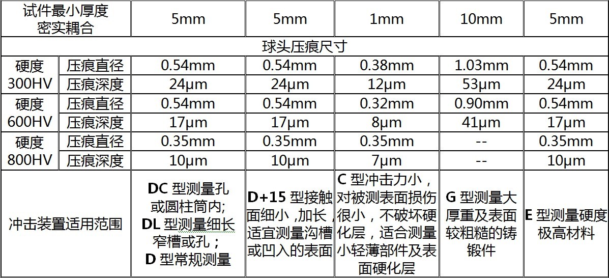 其它硬度测量方法在改变压头和试验力(载荷)时其测试值不同。同样,里氏硬度测试在采用不同类型的冲击装置时,其测试值也不能互相代替。