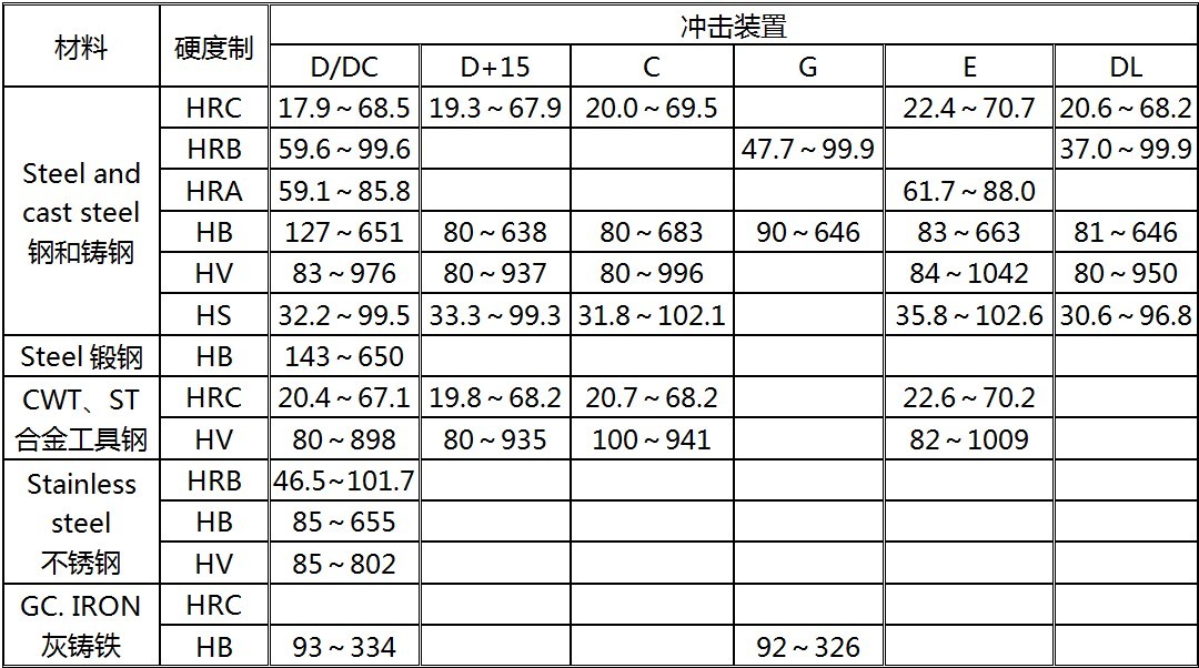 2) 适应多种冲击装置和6种多种硬度制式转换