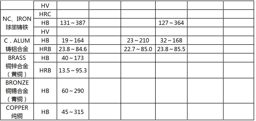 硬度进制:HL、HRC、HRB、HV、HB、HS