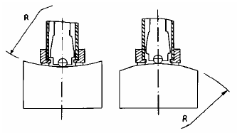 在现场工作中,经常遇到曲面的试件,各种曲面对硬度测试结果的影响不同,在正确操作的情况下,冲击体落在试件表面瞬间的位置与平面试件相同.故通用支承环即可.但当曲率小到一定尺寸时,由于平面条件的变形的弹性相差显著,会使冲头回弹速度偏低,从而使里氏硬度值偏低.冲头在落于试件曲面时与落于平面上有如下偏差: