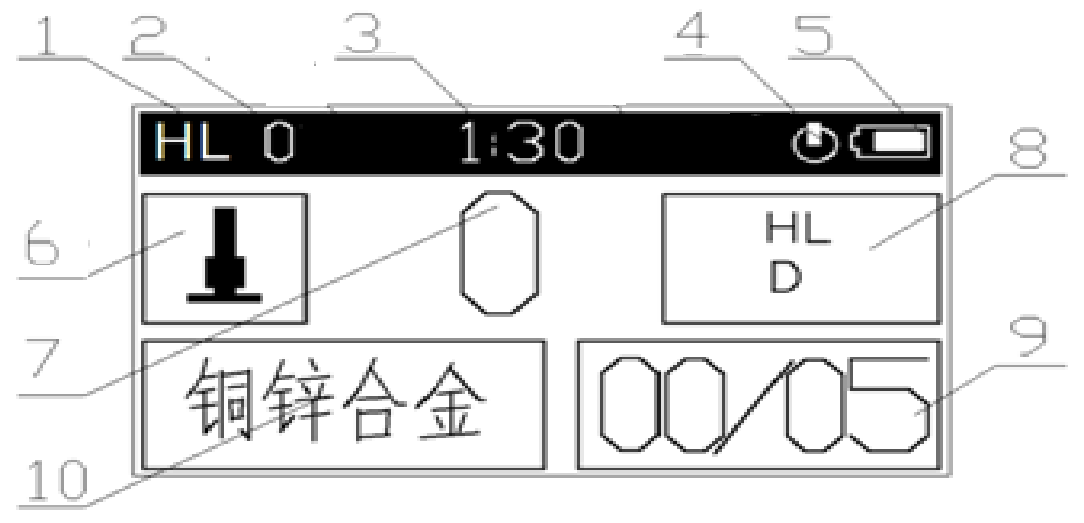 • 通过按键选择测试材料、硬度制式、测试方向及测试次数;