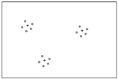 例如: 3 个布氏硬度压痕 (图中+) 3x5 个里氏测量值(图中o)