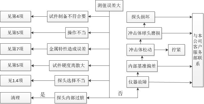 1) 当用标准洛氏硬度块进行检定时,误差均大于2HRC时,可能是球头磨损失效,应考率更换球头或冲击体。
