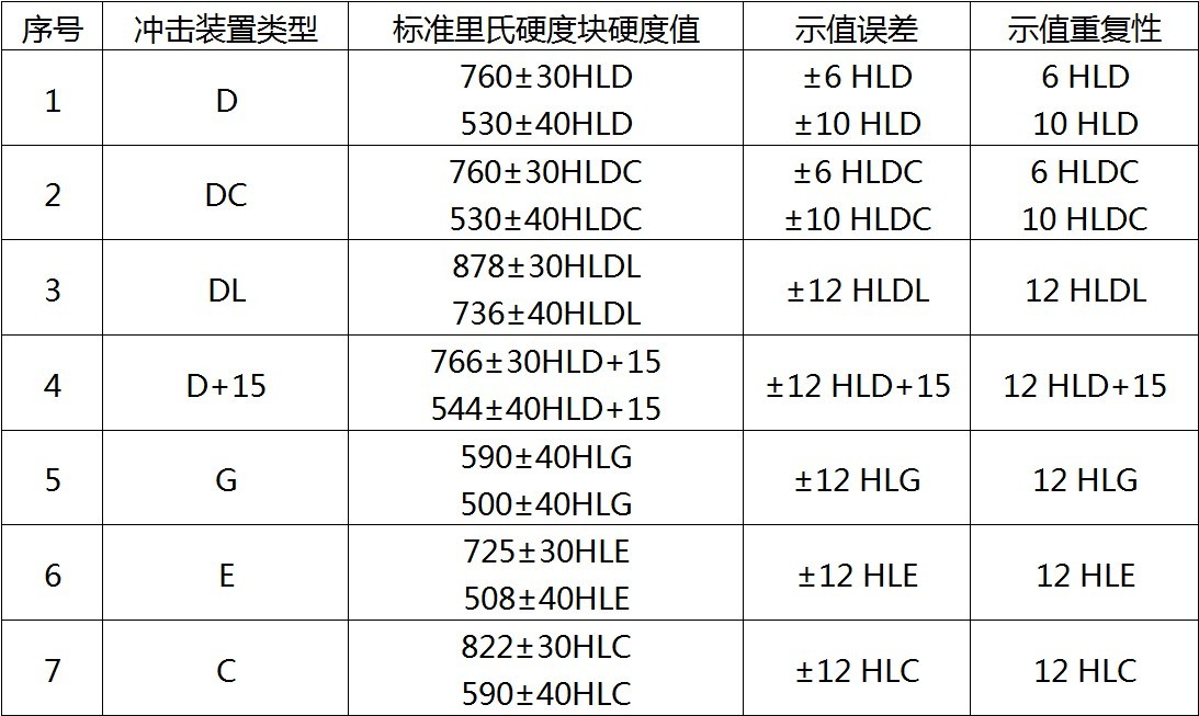 “标准里氏硬度块”是硬度计量的一项新标准计量器具,用于里氏硬度计的周期检定和日常校验,从2000年4月1日正式进行里氏硬度量值传递,为让有关硬度计量与试验人员了解并正确使用,作简要介绍:《里氏硬度计》国家计量检定规程(JJG747-1999)对里氏硬度计里氏硬度示值误差和示值重复性的规定和有关要求列于表7中,表中规定适用于新制造、使用中和修理后的金属里氏硬度计。