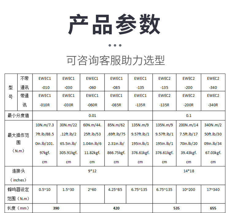 EWAC-10N.m(9*12) EWAC-30N.m(9*12) EWAC-60N.m(9*12) EWAC-85N.m(9*12) EWAC-135N.m(9*12) EWAC-135N.m(14*18) EWAC-200N.m(14*18) EWAC-340N.m(14*18)