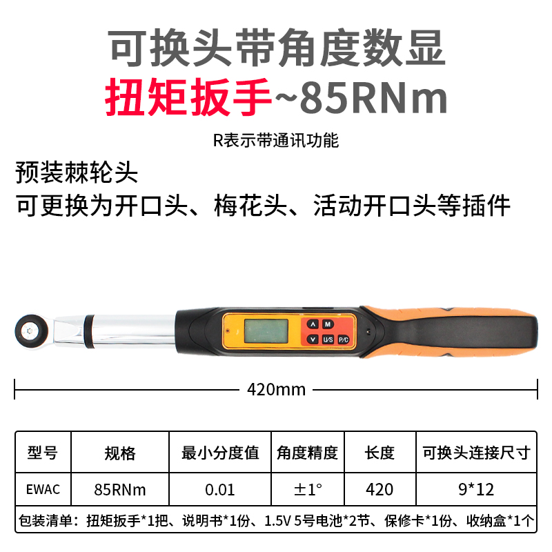 EWAC可换头带角度数显扭矩扳手
